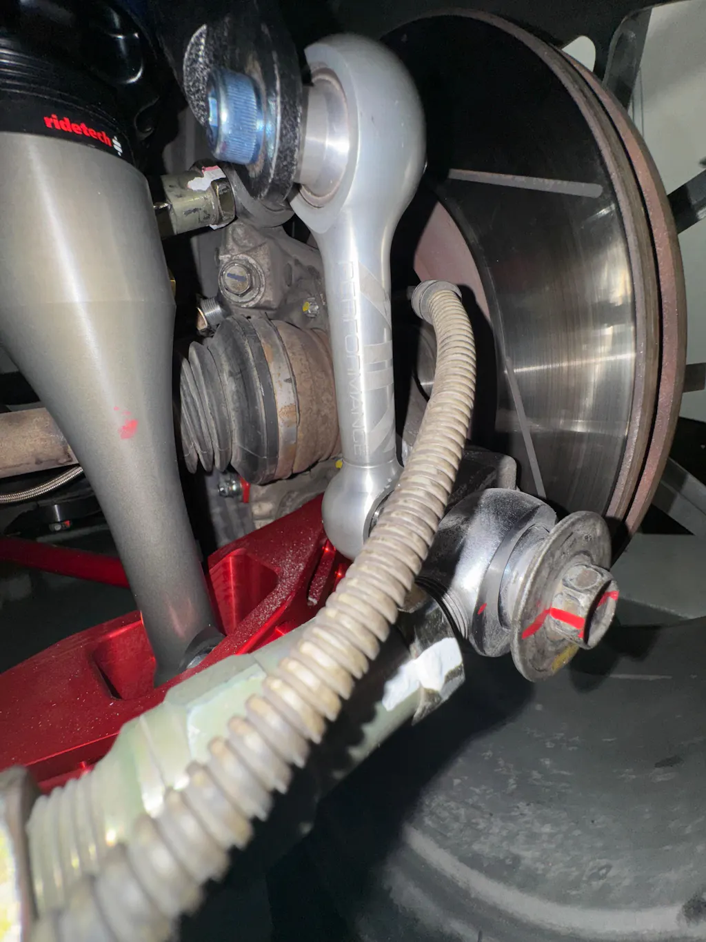 Our Spheriflex design allows us to make the Spherical bearing ball the actual nut, allowing us to get 10 lbs of stuff into more compact, lighter 2 lb package! These rear endlinks have been designed to be the correct length to clear both our control arms, and 15" wheel barrels, taking the guesswork out of adjusting double-side-threaded endlinks with jam nuts.