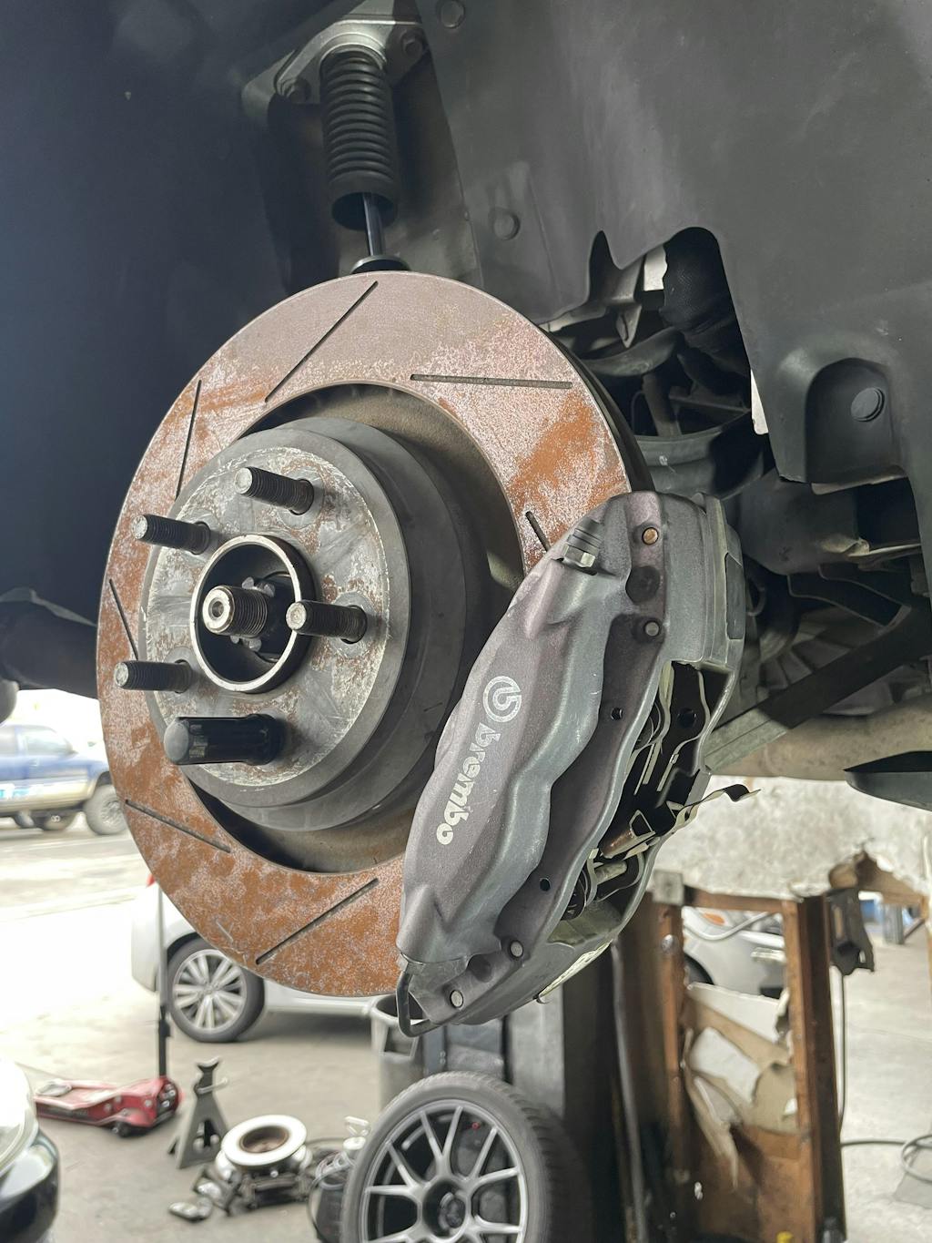 This kit allows you to mount factory SRT rear 4 piston Brembos to your factory non-srt rear spindle, significantly reducing the cost of a brembo upgrade.