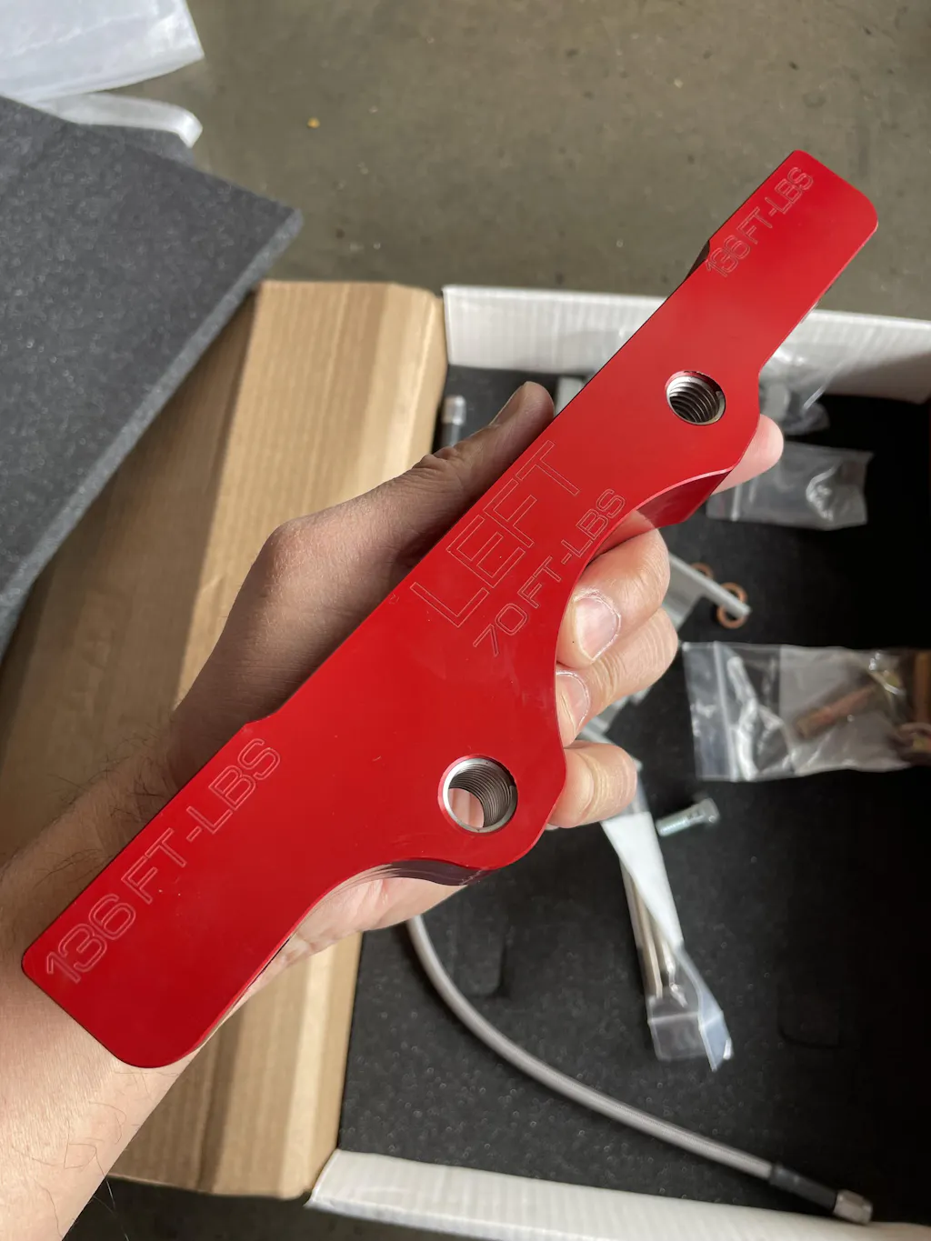 They bolt to a custom cnc machined aircraft aluminum bracket with helicoiled holes, anodized red.